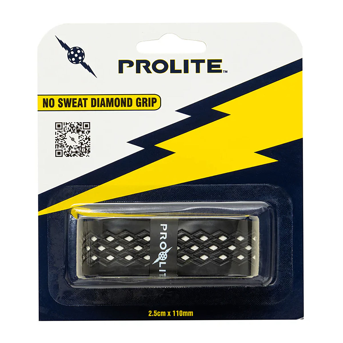 Prolite is a company that manufactures pickleball paddles and other related equipment. So, it’s not too surprising then, that for players who want to conquer sweaty hands and dominate the pickleball court, their using Prolite’s No Sweat Diamond Grip. This innovative grip is engineered with a unique diamond-shaped texture that effectively channels sweat away from your hand, providing a secure and confident grip even in the most demanding conditions.
