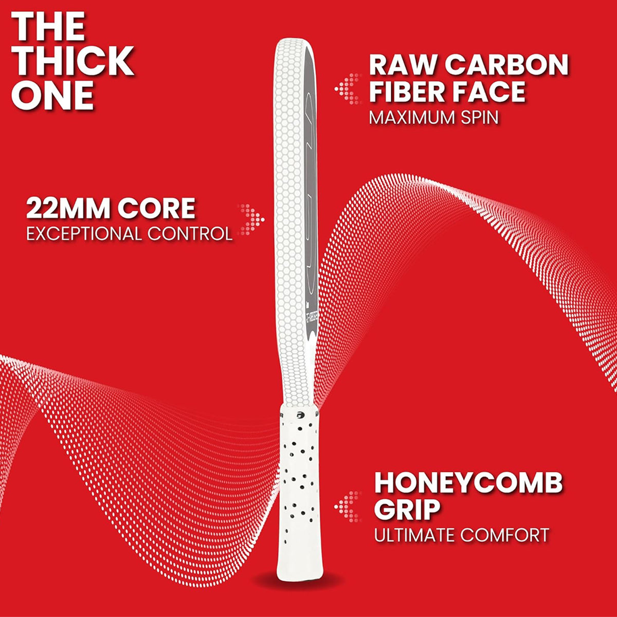 The exterior incorporates premium untreated carbon filaments from a renowned supplier, enabling exceptional grip on the ball to create curving trajectories that keep opponents off balance and allow for strategic positioning. This surface not only boosts rotational effects but also contributes to the paddle's overall robustness, making it a dependable option for regular competitors who need gear that holds up over time. For added personalization, the design includes optional add-ons at the base and midsection to tweak the equilibrium, letting you adjust for more drive or finer touch based on your preferred approach, all while keeping the setup balanced and user-friendly.